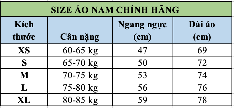 Bảng size tham khảo: