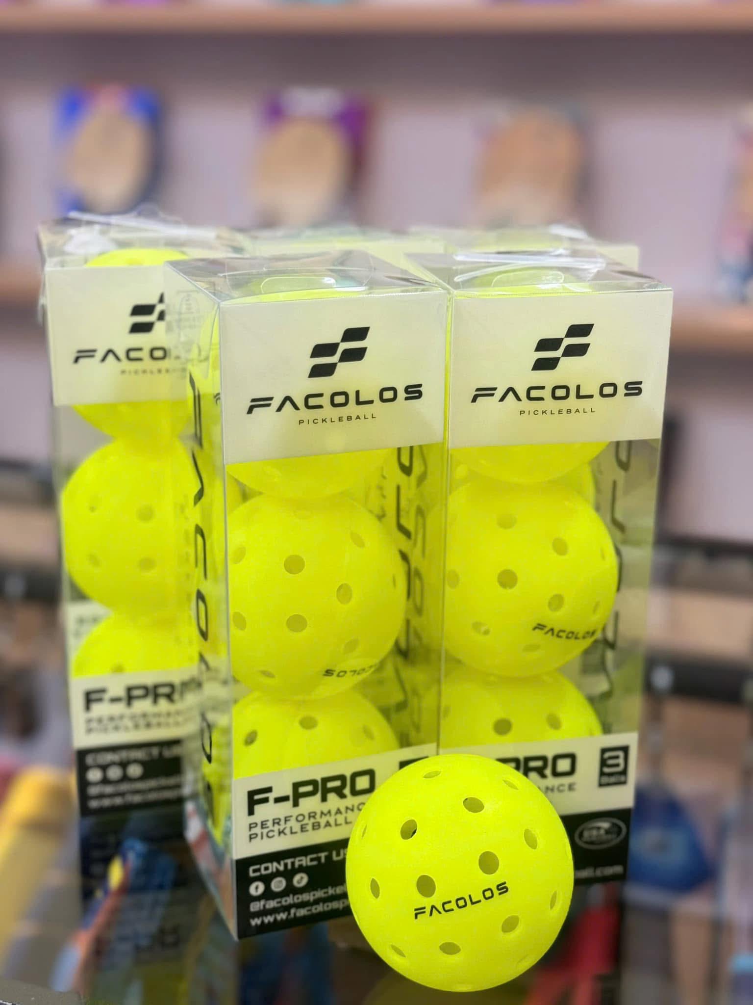 - Bóng Pickleball Facolos F-Pro Performance (Hộp 3 quả) được thiết kế dành cho sân chơi ngoài trời, được làm bởi các công nghệ vật liệu giúp giảm thiểu được độ rung lắc và tương thích với sân chơi và vợt một cách tối ưu hơn.