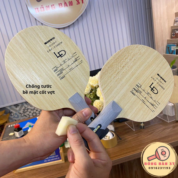 3. Dịch vụ chống tước bề mặt vợt. Gỗ để lâu sẽ ẩm, hoặc lâu ko bóc dán vợt sẽ khiến vợt dễ bị tước gỗ. Nếu cốt vợt đã bị tước sẽ ảnh hưởng rất nhiều đến độ ổn định và việc dán mặt vợt sau này. Dịch vụ này giúp hạn chế nhất độ tước của cốt vợt theo thời gian.