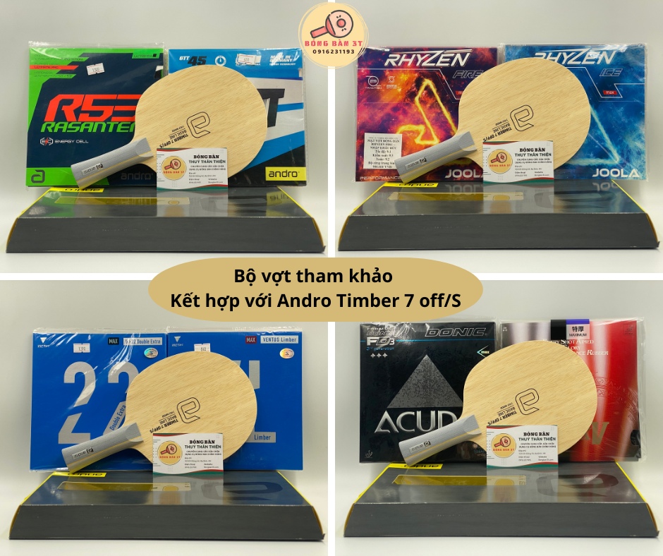 Cốt vợt Andro Timber 7 Off/S là dòng cốt thuần gỗ của hãng Andro - Đức. Đây được đánh giá là dòng cốt vợt thiên về kiểm soát và cảm giác bóng. Andro Timber 7 Off/S được cấu tạo với 5 lớp gỗ Ayous và 2 lớp veneer ngoài từ gỗ Limba, do đó hiệu suất của dòng cốt này trực tiếp dựa trên cấu trúc lớp và gỗ tự nhiên. Cốt vợt Timber 7 Off/S có độ cứng đáng kể nên cũng là một sự lựa chọn phù hợp với lối đánh tấn công thích chơi với vợt gỗ nguyên chất. Cấu tạo 7 lớp gỗ giúp Timber 7 Off/S vô cùng ổn định và tăng cường sức mạnh, tốc độ nhưng song song đó vẫn giữ được cảm giác bóng cho người chơi. Cốt vợt Andro Timber 7 Off/S cũng được đề xuất sử dụng cho những với người chơi gai ngắn tấn công.