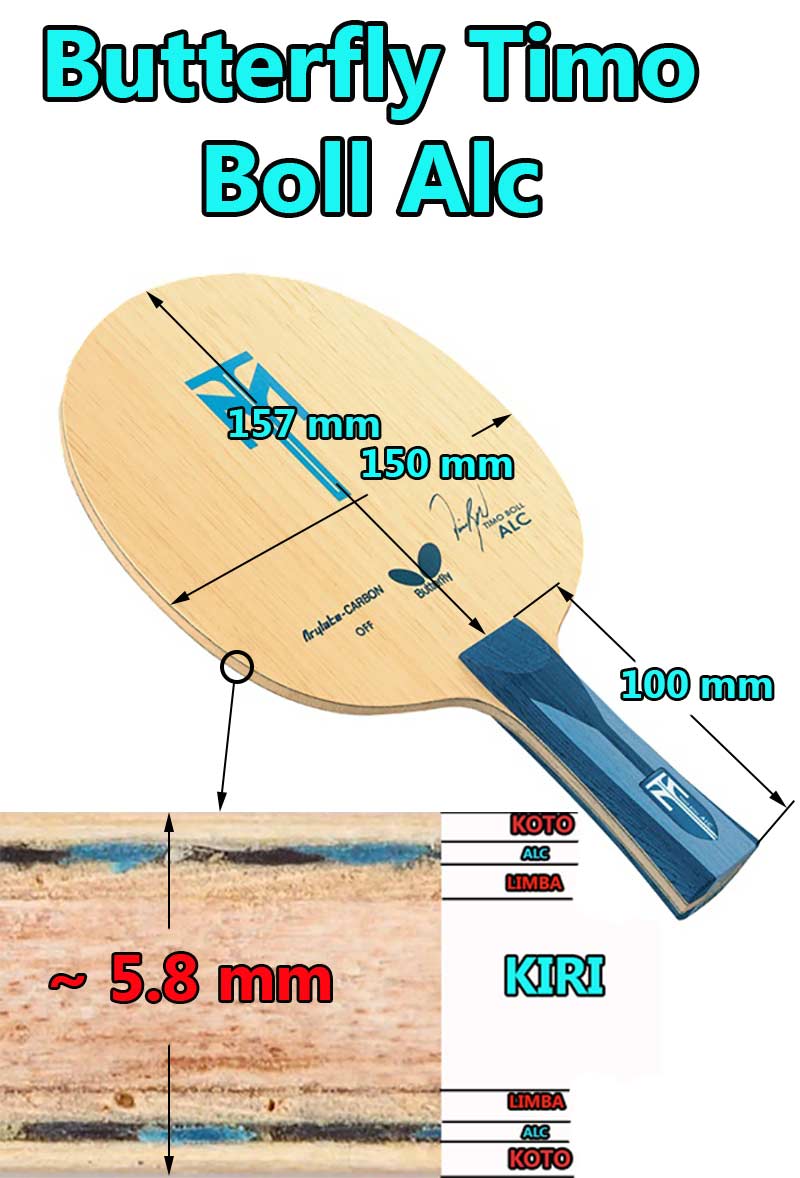 Cốt vợt Timo Boll ALC có 7 lớp. Nó được tạo thành từ 2 lớp Carbon Arylate, hai lớp Koto, hai lớp Limba và 1 lớp Kiri (lõi). Carbon Arylate nhẹ - cho bạn tốc độ trong khi các lớp gỗ mang lại cảm giác mềm mại và ít rung hơn.