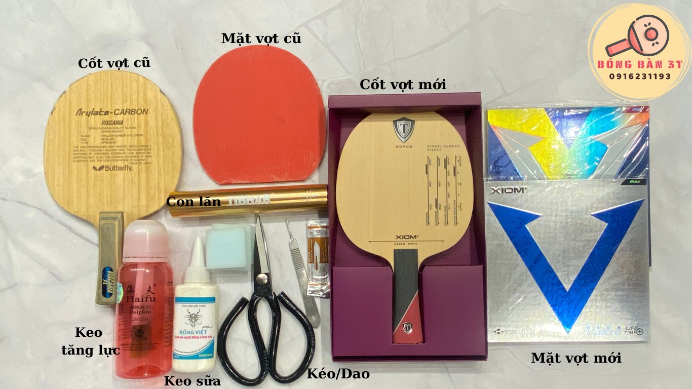 - Vợt bóng bàn cũ/ Cốt vợt và mặt vợt bóng bàn mới.