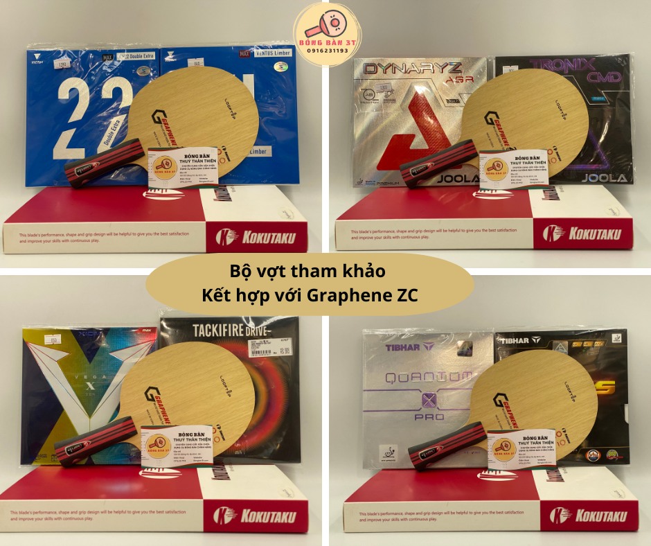 Graphene ZC có cấu tạo 7 lớp: 5 lớp gỗ kết hợp cùng 2 lớp sợi ZC Carbon. Dòng sợi ZC Carbon là một trong những dòng sợi mới nhất hiện nay – giúp gia tăng uy lực tấn công và mở rộng hồng tâm lên mức tối đa cho cốt vợt. Hãng Kokutaku đã chủ động kết hợp sợi ZC Carbon này với lớp ngoài gỗ Limba (dòng gỗ tạo xoáy cực cao) để gia tăng độ xoáy cho cốt vợt. Đường bóng tạo ra có độ vòng cung cùng xung lực và độ vọt đột biến, khi chạm bàn đối phương gây rất nhiều khó khăn cho việc thực hiện phòng thủ. Ngoài ra với khả năng tạo xoáy hoàn hảo đến từ cốt vợt Graphene ZC cũng đem lại cho người chơi sự ổn định và chuẩn xác, nâng cao sự tự tin cho người chơi để hướng tới những kỹ thuật cao hơn trong lúc thi đấu.