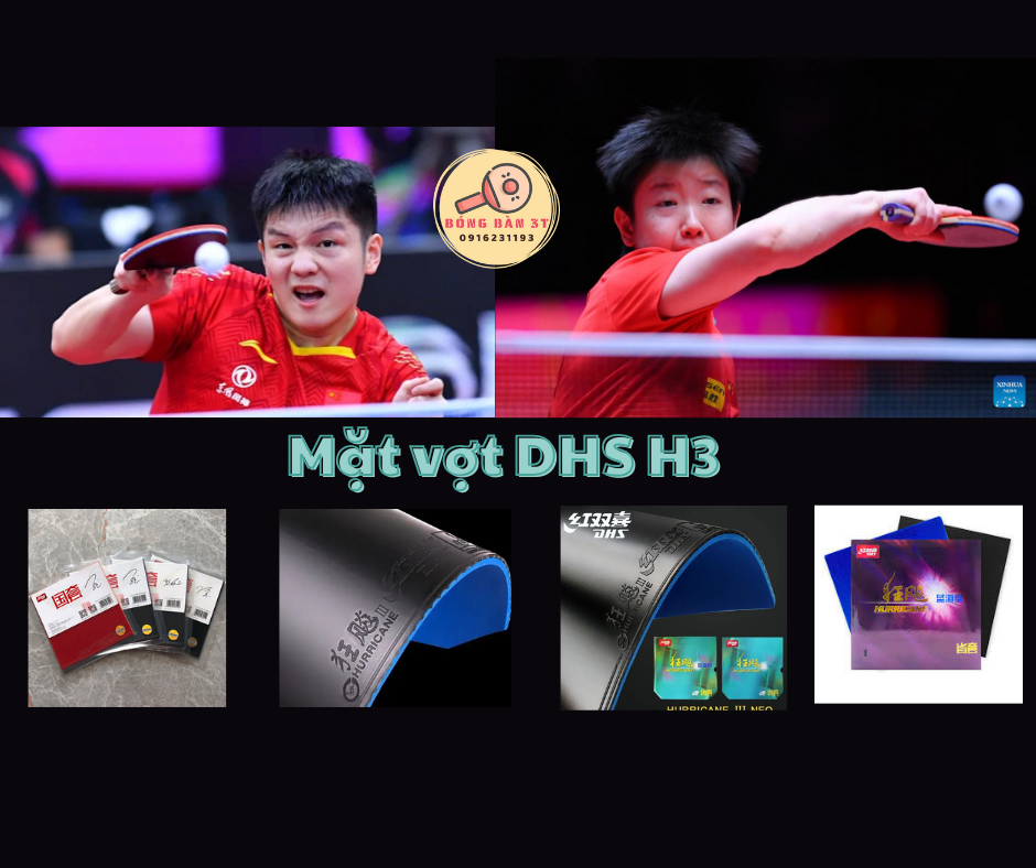 DHS Hurricane 3 (H3) là dòng mặt vợt tacky (siêu bám dính) tiêu biểu của Trung Quốc, nổi tiếng với khả năng tạo xoáy cực mạnh, quỹ đạo thấp – cong và độ tuyến tính cao (đánh nhẹ đi nhẹ, đánh mạnh đi rất nhanh). Ở đẳng cấp cao, H3 thường được dùng ở mặt forehand (Phải) và là “chuẩn mực” của lối chơi Trung Quốc.
