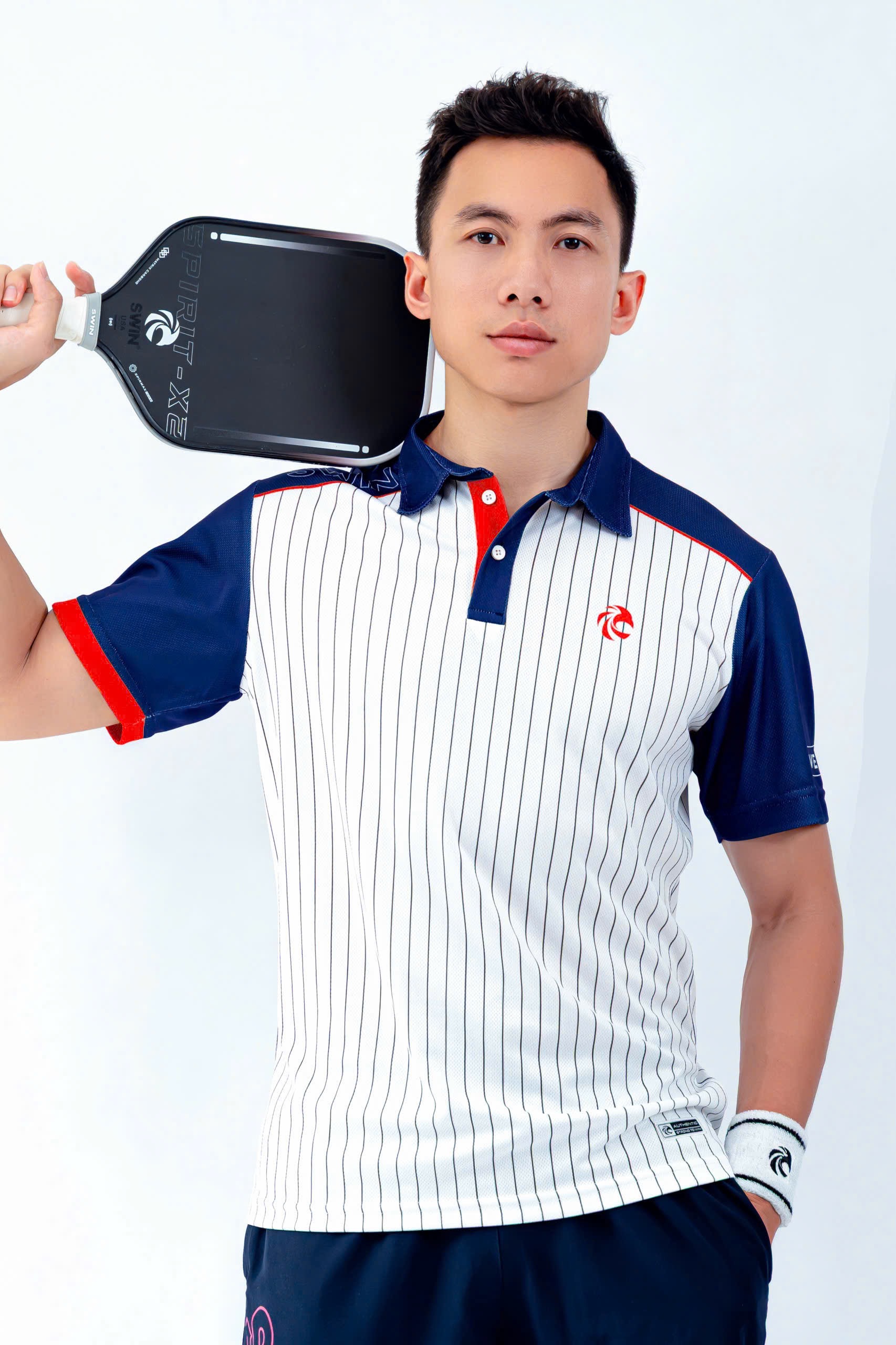 Điểm nổi bật của Swin Vertu là họa tiết sọc dọc trên thân áo. Chi tiết này giúp tổng thể trông cân đối hơn. Người mặc cũng cảm thấy dáng gọn và cao hơn. Form polo cổ bẻ tạo cảm giác lịch sự. Áo có thể dùng khi chơi thể thao hoặc đi ra ngoài.